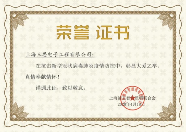 查看詳細(xì) >>4月18日晚,上海浦東智能照明聯(lián)合會(huì)通過(guò)云直播形式,由會(huì)長(zhǎng)李志君向上海三思電子工程有限公司等多家會(huì)長(zhǎng)單位頒發(fā)榮譽(yù)證書(shū),以表彰企業(yè)在抗擊新型冠狀病毒肺炎疫情防控中,為抗疫捐款捐物,彰顯大愛(ài)之舉;眾志成城,打贏抗擊疫情防疫戰(zhàn)。